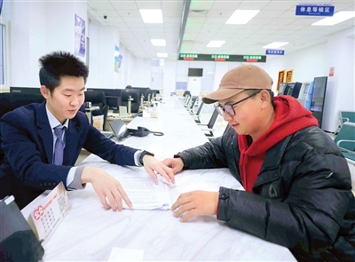 2月28日,大兴机场临空经济区大兴片区政务服务大厅内,工作人员正在为企业办理业务,“跨省通办”的服务让办事更加便捷高效,展现了政务服务的温度与速度。 北京日报记者 李如意 摄