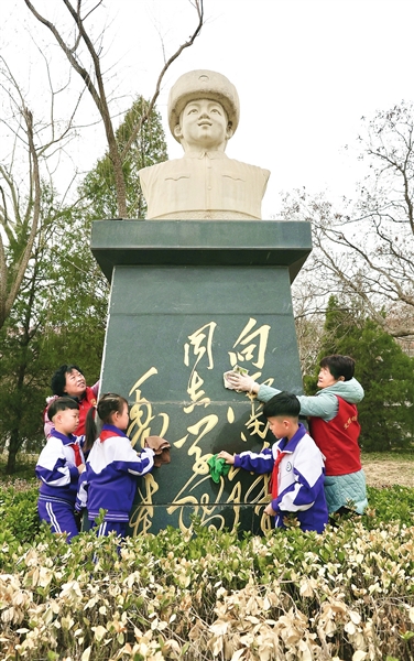 东丽区新时代文明实践指导服务中心的志愿者和津门小学学生在东丽公园雷锋广场开展志愿服务活动。 本报记者 孙立伟 摄