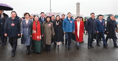 出席十四届全国人大二次会议的天津代表团代表豪情满怀步入人民大会堂。