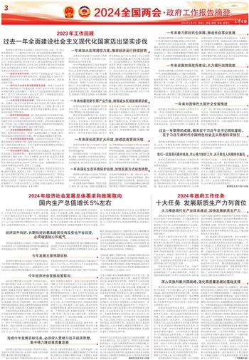 国务院总理李强5日在政府工作报告中介绍今年政府工作任务时提出,切实保障和改善民生,加强和创新社会治理。坚持以人民为中心的发展思想,履行好保基本、兜底线职责,采取更多惠民生、暖民心举措,扎实推进共同富裕,促进社会和谐稳定,不断增强人民群众的获得感、幸福感、安全感。