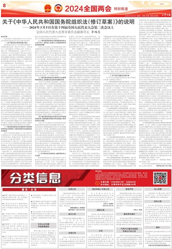 2023年10月,十四届全国人大常委会第六次会议对国务院组织法修订草案进行了初次审议。常委会组成人员普遍认为,修订草案贯彻落实党中央决策部署,突出新时代的特点和要求,总结吸收国务院工作实践的新成果新经验,进一步完善国务院组织制度和工作制度,对于全面加强政府自身建设、建设人民满意的政府、不断提高政府治理体系和治理能力现代化水平具有重要作用。会后,宪法和法律委员会、常委会法制工作委员会就修订草案广泛征求意见,召开座谈会,听取中央和国家有关部门、地方和专家学者的意见,在中国人大网全文公布修订草案向社会征求意见。2023年12月,十四届全国人大常委会第七次会议对国务院组织法修订草案进行了再次审议,并决定将国务院组织法修订草案提请十四届全国人大二次会议审议。会后,全国人大常委会办公厅将修订草案印发十四届全国人大代表征求意见,组织部署全国人大代表研读讨论,再次征求社会公众意见。2024年2月19日,宪法和法律委员会召开会议,根据十四届全国人大常委会第七次会议的审议意见、代表研读讨论中提出的意见和各方面的意见,对修订草案作了进一步修改完善。修订草案经过全国人大常委会两次审议和广泛征求意见,充分吸收各方面的意见建议,已经比较成熟。据此,形成了提请本次会议审议的《中华人民共和国国务院组织法(修订草案)》。