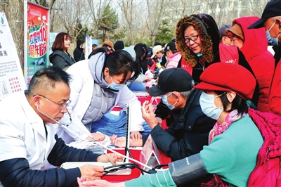 河东区富民路街道举办“弘扬雷锋精神 共建志愿街区”文明市集活动,现场开展义诊。 本报记者 吴迪