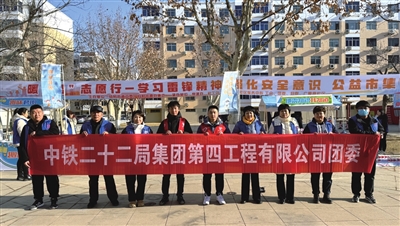 3月5日,驻津央企中铁二十二局四公司团委组织在津各级团组织广泛开展志愿服务活动,武清总部青年志愿者们来到杨村街道,积极开展“暖阳公益行·志愿服务市集”活动,宣讲安全用火用电常识,津潍铁路项目部青年到滨海新区星海苑社区老志愿者、滨海好人沈玉德老人家中慰问,用行动诠释雷锋精神的时代内涵,深化了天津市文明单位创建工作。 于泽 严昊男