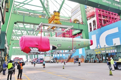 “针对空客大部件班轮,我们精细化编制船舶动态计划,主动协调相关口岸单位,统筹全港通航资源,引航、拖轮做到‘双优先’。接卸作业也通过不断探索总结经验,形成了标准化工艺,并形成以空客大部件作业为代表的异形作业现场指导模式,确保全过程‘零缺陷’安全高效接卸。”天津港太平洋国际集装箱码头操作部助理李文涛说。