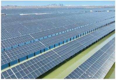 农业银行天津市分行支持某光伏项目,建成后将形成“水上光伏发电、水面蒸发制卤、水下水产养殖”的立体循环生态模式