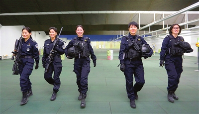 “着装演练!”一声令下,女特警们迅速离开训练场,10多分钟后,姑娘们齐刷刷走来,手握手枪,肩背狙击枪,又帅又飒又美丽!记者跃跃欲试想接过狙击枪掂掂分量,没想到竟然没能拿动。原来狙击枪足有10多斤。姑娘们说,她们身上的这套装备也有10斤左右的重量。列队、持枪、行进……训练中,女特警们个个严肃认真;逛街、品茶、聊美食……训练之余,她们也是温柔可爱的“俏姑娘”。