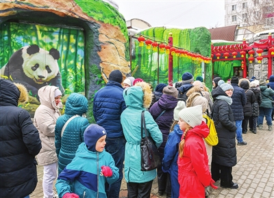 图为人们在俄罗斯莫斯科动物园排队等待观看大熊猫“喀秋莎”。
