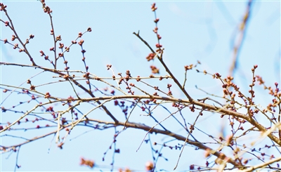 昨日,位于红桥区的桃花园内桃树枝上结满花苞,在暖阳的照射下含苞待放。 本报记者 孙立伟 摄