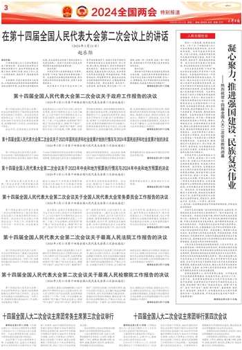 3月10日下午和11日上午,各代表团认真审议了十四届全国人大二次会议关于政府工作报告、2023年国民经济和社会发展计划执行情况与2024年国民经济和社会发展计划、2023年中央和地方预算执行情况与2024年中央和地方预算、全国人大常委会工作报告、最高人民法院工作报告、最高人民检察院工作报告的六个决议草案,一致同意提请大会全体会议表决。主席团常务主席根据各代表团的审议意见,建议将各项决议草案提请大会全体会议表决。