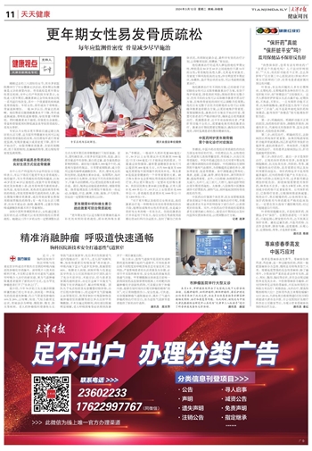 李娜说,中医中药在绝经后骨质疏松的防治方面也有很好的疗效。中医理论认为,女性绝经后,阴虚阳亢易致骨髓受损、骨质减少,从而引发骨质疏松。中医中药通过综合方式对更年期女性进行整体调理防治骨质疏松。中药调理旨在调和阴阳平衡和气血循环,为骨骼提供足够的养分,增加骨密度,促进骨健康。食疗调理通过黑枸杞、桑葚、龙眼、豆腐、海带、鲜奶等食补,调节阴阳平衡,提高骨密度。此外,穴位按摩,如按揉肾俞穴、太溪穴、太冲穴、足三里穴、大杼穴,能补益肝肾防治更年期骨质疏松。太极拳、八段锦等中医整体调养可舒展肌肉、调和气血,同样能起到预防骨质疏松的作用。