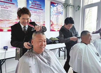 “这几个小伙子隔段时间就来,头发剪得好哦,给钱还不要……”赵大爷从凳子上站起来,像前几次一样,对新剪的发型很满意。