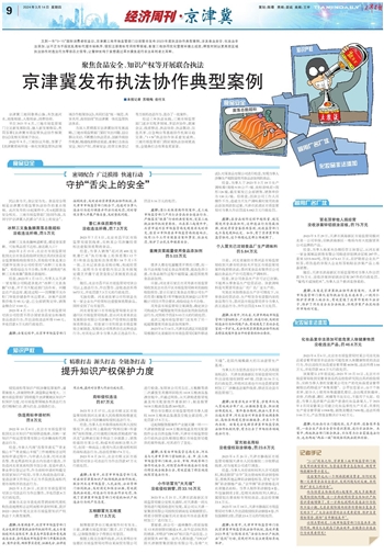 为深入贯彻落实京津冀协同发展战略,三地市场监管部门紧盯突出问题、回应群众关切,不断整合执法需求,创新升级协作机制,畅通线索移送渠道,重拳打击食品安全、知识产权、质量安全、经营主体登记等方面的违法行为,查办了一批案件。