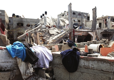 图为3月14日拍摄的加沙地带中部布赖杰难民营一处住宅遭空袭后的场景。 新华社发