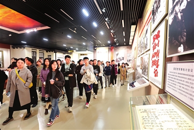 京津冀三地高校师生来到平津战役纪念馆参观学习。 本报记者 刘欣 摄