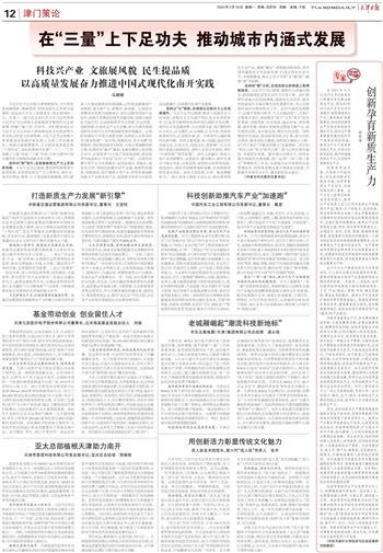 坚持向“新”前行,在发展新质生产力上实现新突破。习近平总书记强调,要发挥科教资源丰富等优势,在发展新质生产力上勇争先、善作为。南开区科技、教育、人才等创新资源集聚,我们要深入实施创新驱动发展战略,以科技创新推动产业焕新,催生新产业、新模式、新动能。以推进京津冀协同发展为战略牵引,深化创新协同和产业协作,积极与首都高校院所沟通对接,加强与海淀区交流合作,主动承接更多央企资源、民企资源、创新资源,打造央企产业生态圈,助力天津先进制造研发优势与北京科技创新优势深度融合。以高标准建设天开园为重要支撑,发挥核心区带动作用,服务构建“一核引领、两翼协同、多点支撑”发展格局,用好物创海河实验室、天南大等战略科技力量,拓展校企“握手”通道,加强关键核心技术联合攻关,实现更多“从0到1”的原始创新,推动更多科技成果从“实验室”走向“生产线”。以现代化都市型产业为发展路径,坚持高端化、智能化、绿色化方向,围绕创新链布局产业链,做强科技服务、智能制造、医疗健康主导产业,培育发展战略性新兴产业和未来产业,促进数字经济与实体经济深度融合,全面提升区域产业能级。