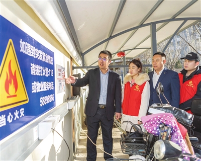 日前,南开区发布《关于居民住宅小区电动自行车停放充电“五个严禁”的通告》,各街道社区通过技防、人防、宣传引导相结合等多种方式,提升群众消防安全意识,对电动车进楼入户等行为说“不”。 通讯员 王英浩 摄