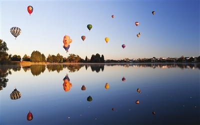 图为3月20日清晨,放飞的热气球经过新西兰汉密尔顿湖上空。