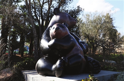 铜雕展示“圆梦”坐在母亲怀中,憨态可掬。据动物园方面介绍,铜雕高2.5米,名为《“圆梦”:圆一个梦想》,这既说明了作品由来,又阐释了大熊猫“圆梦”名字的意涵。