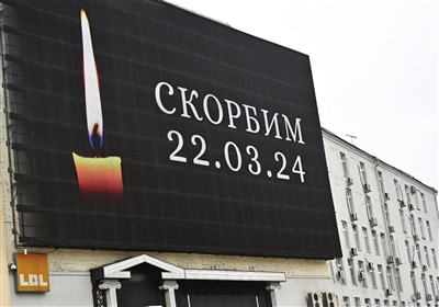 3月23日,俄罗斯首都莫斯科街头的广告牌播出蜡烛图案,悼念莫斯科近郊恐袭事件遇难者。新华社发