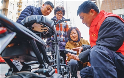 连日来,西青区大寺镇龙顺园社区开展电动自行车“健康体检”志愿服务活动。志愿者义务为社区居民的电动自行车进行线路和电池安全检测,并指导社区居民正确使用和保养电瓶。