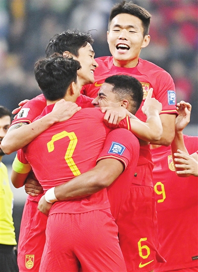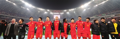 本报讯(记者 申炜 摄影 孙震 崔跃勇)昨晚,中国男足在世预赛亚洲区36强赛中迎战新加坡队。尽管比赛过程有些曲折,但中国男足还是在天津奥林匹克中心体育场以4:1大比分取胜,为现场42977名球迷送上了一份大礼。
