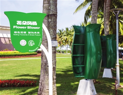 博鳌近零碳示范区内的花朵风机。花朵风机用来收集风能,是岛内可再生能源利用项目之一。