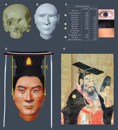 复旦大学科技考古研究院文少卿团队用专门适用于古DNA的捕获探针,从北周武帝肢骨样本上获取了约100万个可用的基因位点,还原北周武帝头发、皮肤、瞳孔等关键特征。经过6年的反复尝试,终于“描绘”出宇文邕头像。