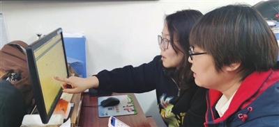南开区万兴街道纪检监察工委与社区纪检监察工作联络站工作人员查看问题办理情况。