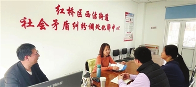 “一周接待群众多少人次,遇到的矛盾纠纷主要集中在哪些方面?有哪些难点问题需要纪检监察部门配合解决?”在河东区大王庄街道“宜和调解工作室”,河东区纪委监委工作人员正在与调解人员深入交流。