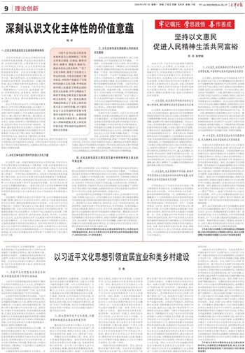 习近平文化思想的提出标志着党对“建设什么样的中国特色社会主义文化、怎样建设中国特色社会主义文化”的规律认识达到了新高度,为新时代文化建设指明了方向,也为宜居宜业和美乡村建设提供了科学行动指南。