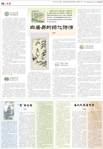 唐朝的柳树分布之广泛,可以从诗人的记录中窥探一二。王维在《少年行四首》中写道:“新丰美酒斗十千,咸阳游侠多少年。相逢意气为君饮,系马高楼垂柳边。”此处的“咸阳”指的是京城长安,这里的柳,是京城长安的路边柳。而杜甫的“两个黄鹂鸣翠柳,一行白鹭上青天”,写的是四川成都的翠柳。白居易在杭州为官时曾遍植柳树,后来离开江南,他还回忆道:“曾栽杨柳江南岸,一别江南两度春。遥忆青青江岸上,不知攀折是何人。”这首诗怀念的是杭州河湖岸边的杨柳。