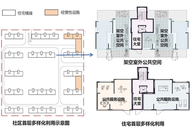 《意见》提出,为了增加社区活力,提高社区环境品质,提升公共服务设施便利性,鼓励住宅首层空间多样化利用,除住宅功能(包括住宅交通)外,可设置应建公服,也可局部架空作为室外公共空间。