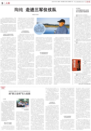 2016年春天,陶纯得到了一个走进三军仪仗队的机会。他回忆当时激动的心情:“我虽然是一个有着三十多年军龄的老兵,比当时仪仗队里面任何人的资历都老,但我却像一个新兵一样,怀着异样的心情、别样的感觉,有点儿战战兢兢、不知所措地驻扎进了北京西四环外那座神秘的军营。”