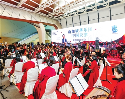 本报讯(记者 王睿 摄影 吴迪)昨日,正在中国巡演的新加坡华乐团以“生态琴缘”为主题,在国家海洋博物馆举办惠民音乐会,为津城市民带来一场音乐盛宴。本场音乐会旨在以生态城为载体,促进中国和新加坡两国在文化和艺术领域深入交流。