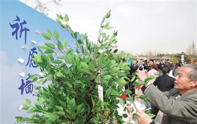昨日,天津市殡仪墓地事务服务中心举行“礼赞生命归自然 暖心服务寄哀思”“永生缘”节地生态安葬15年公祭活动,在场人员用集体公祭的方式缅怀逝者。
