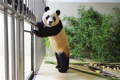 图为已经入住隔离检疫圈舍的大熊猫“福宝”。