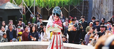 本报讯(记者 刘莉莉 摄影 姚文生)昨天下午,张园里响起悠扬戏韵,一场精心设计的“鬓边即是海棠红”戏曲快闪活动,让百年洋楼邂逅传统戏曲,为众多游人的津门之旅增添一份美好。同步进行的线上直播也“圈粉”许多观众。