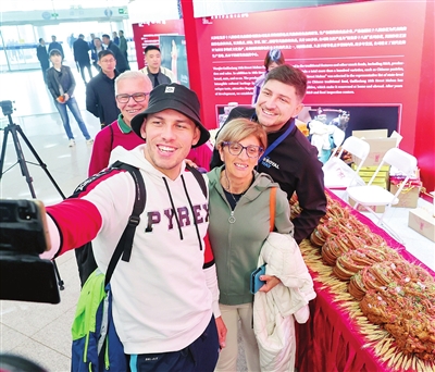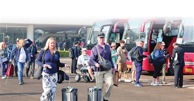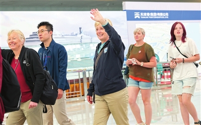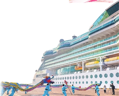 昨日,“海洋旋律号”上的1800余名国际游客从天津国际邮轮母港登陆,开启两天一夜的京津之旅,极具传统文化特色的津味儿民俗、舞龙舞狮表演等迎接游客们的到来。 本报记者 吴迪 张磊 摄
