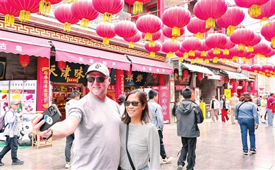 昨天下午,在“海洋旋律号”停靠期间,船上的近200名国际游客来到古文化街,近距离了解中国传统文化和津味民俗。