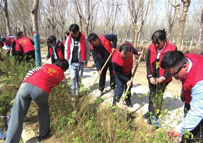 活动现场热火朝天,一派忙碌景象。志愿者们在专业人员的指导下撸起袖子、挥锹铲土、扶树正苗、夯土浇水,一排排树苗昂然挺立。经过一天的辛勤耕耘,新栽植的300余棵树苗迎着和煦的春风,成为一道靓丽的风景线,同时也展现了铁建人昂扬向上的精神风貌。