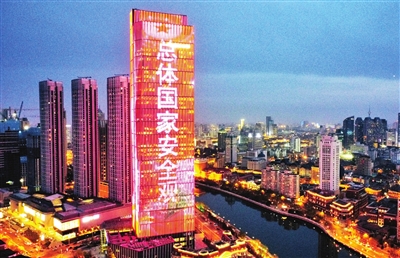 本报讯(记者 孟若冰 摄影 吴迪)“总体国家安全观 创新引领10周年”“安全是发展的前提 发展是安全的保障”……4月15日将迎来第九个全民国家安全教育日,连日来,一条条以国家安全为主题的灯光秀闪耀地标性建筑,在海河沿岸点亮“河东之窗”。除了主题灯光秀,河东区还广泛开展多层次多载体多领域的“4·15”全民国家安全教育活动,包括萌娃进警校、国家安全从娃娃抓起以及全民国家安全教育“同上一节课”、军休干部国家安全主题书法日等。