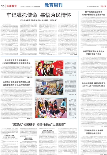 习近平总书记指出,“大思政课”我们要善用之,一定要跟现实结合起来。天津商务职业学院作为天津市首批“大思政课”示范校建设单位,高度重视党建引领作用的发挥,积极推进师生共上“大思政课”,共享鲜活的教学素材、实用的教学方法,努力打造课堂、校园、社会、网络一体化的“无边界”思政课堂。下一步还将继续追随习近平总书记的足迹,走进古文化街、平津战役纪念馆等地,用好本土历史文化遗产和优质红色文化资源,与各方一起“添柴加料”,营造大思政课教学“好气候”。同时,聚焦推动京津冀协同发展走深走实、发展新质生产力、推动文化传承发展等重点,拓展思政“课堂半径”,形成育人合力,让纪念馆、博物馆、田间地头、工厂车间、智能制造都成为思政课堂,探索思政课堂+实践“最优解”,把“大道理”讲活讲透。 通讯员 刘晓璇