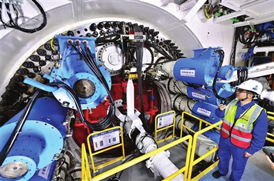中铁十四局工作人员启动盾构机。 本报记者 张磊 摄