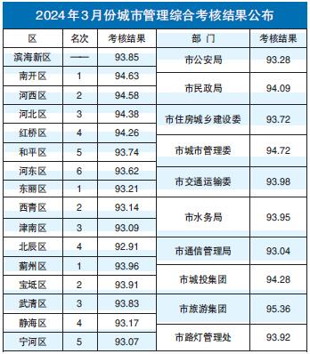 2024年3月份城市管理综合考核结果公布