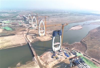 连日来,中铁十八局承建的引汉济渭二期工程北干线输水管道施工III标(渭河管桥)项目现场,一派繁忙景象。引汉济渭二期工程北干线输水管道施工III标全长1.26公里,其中渭河管桥长1.23公里,是引汉济渭二期工程最大单体建筑,也是国内水利领域首座四塔五跨钢桁梁斜拉结构的特大桥。 赵佳星