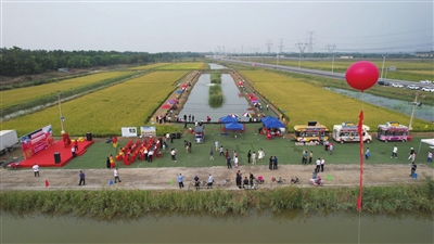 周李庄鱼水田城市农业生态园蟹肥稻香的丰收景象。(资料片)