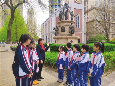 为用好红色资源,赓续红色血脉,近日,红桥区丁字沽小学组织学生参观金汤桥会师公园等地,并邀请天津博物馆副馆长为孩子们讲解先辈崇高的道德情操、矢志报国的伟大情怀,了解解放战争光辉历史,重温峥嵘岁月,弘扬革命精神,传承红色基因。