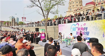 本报讯(记者 宋德松 张帆)作为“桥见海河,邂逅浪漫”——桥边音乐汇系列活动的一部分,河北区将在狮子林桥亲水平台和北安桥音乐广场两个点位举办多场文化演出活动。昨日下午,桥头音乐节首场演出在烟火气十足、具有超高热度的狮子林桥亲水平台举行。