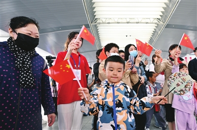 昨日,京津城际“总体国家安全观”主题宣传列车从天津站正式首发。 本报记者 孙震 通讯员 杨松 摄