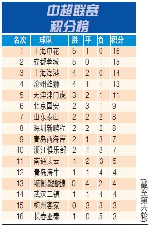 中超联赛积分榜